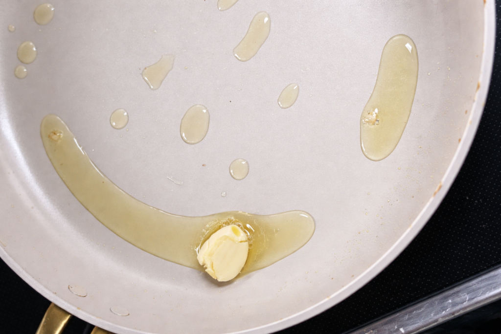 - Add 1–2 tablespoons butter or oil to the same pan.