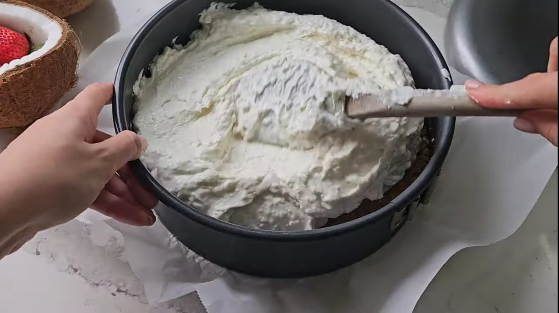 No-bake! Coconut-Strawberry cheesecake