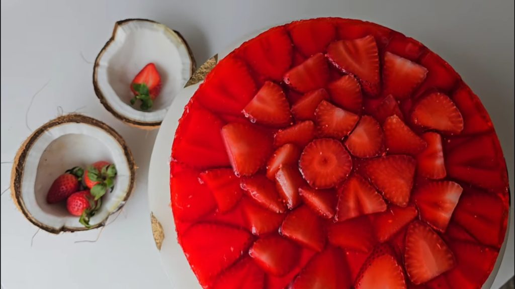 A light and creamy no-bake coconut cheesecake topped with a bright strawberry jelly layer. Simple to make, perfectly refreshing, and ideal for summer parties or everyday desserts.