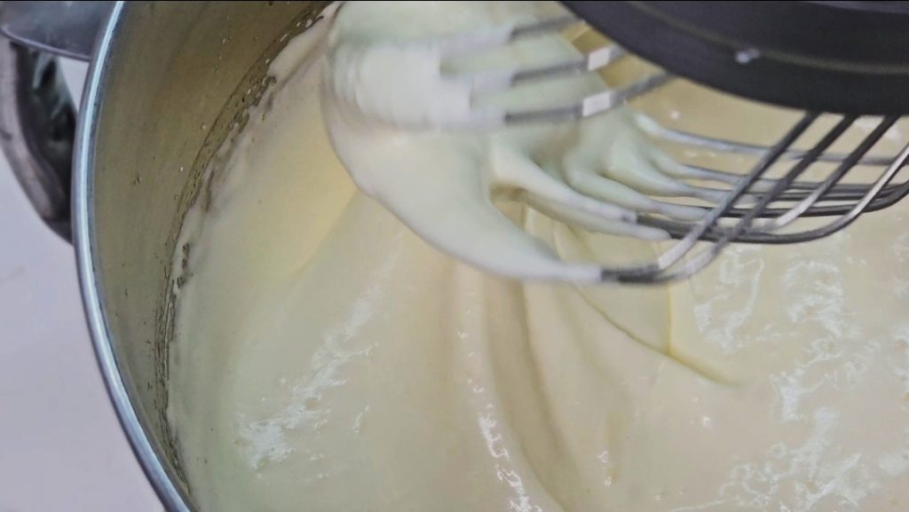 - Beat with a mixer on medium speed until the mixture thickens and forms soft peaks (do not overbeat).